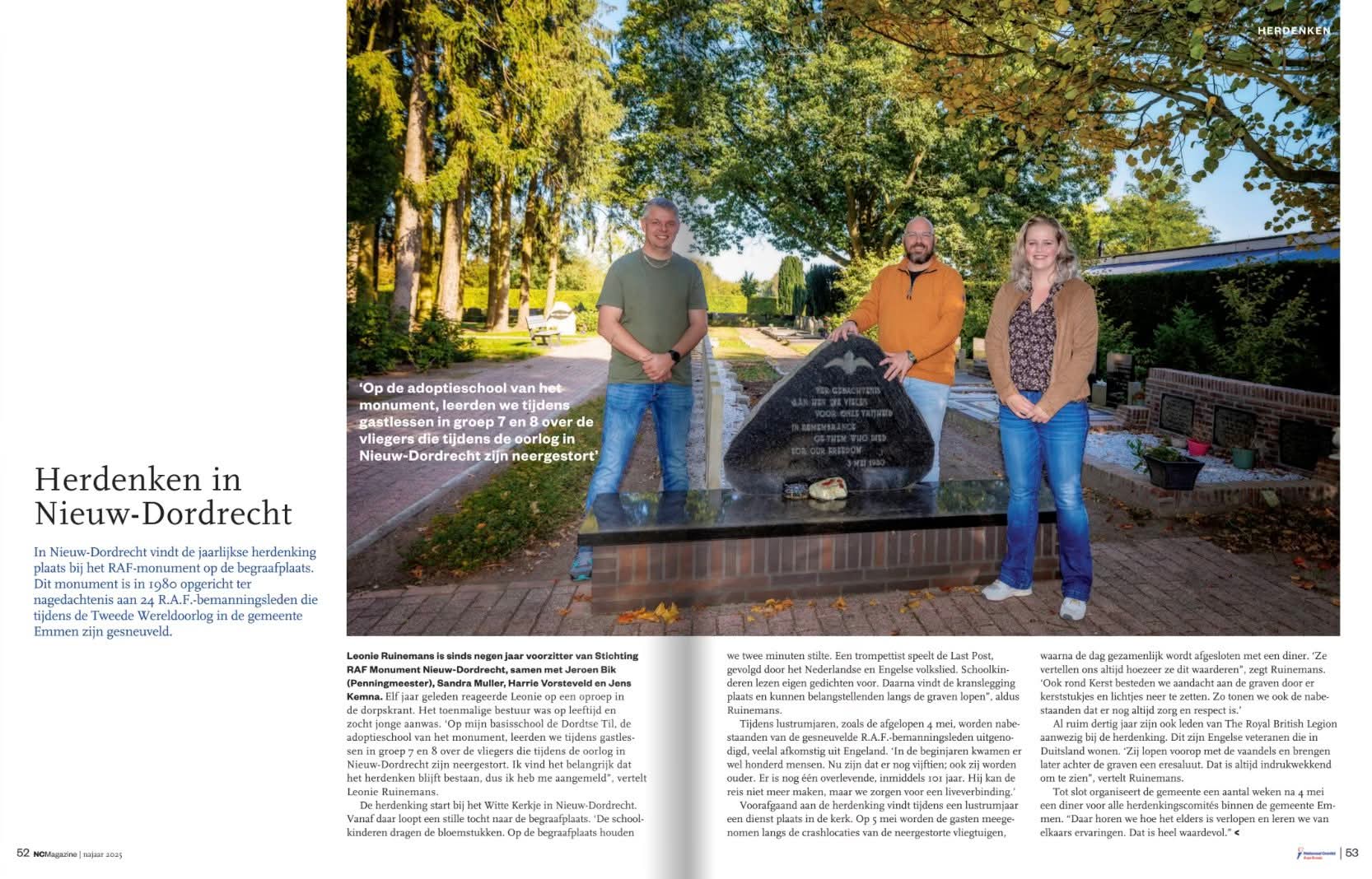 In de laatste editie van het NC Magazine van het Nationaal Comité 4 en 5 mei mochten we als RAF Gedenksteen Comité vertellen hoe we in Nieuw-Dordrecht herdenken op 4 mei.